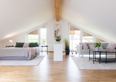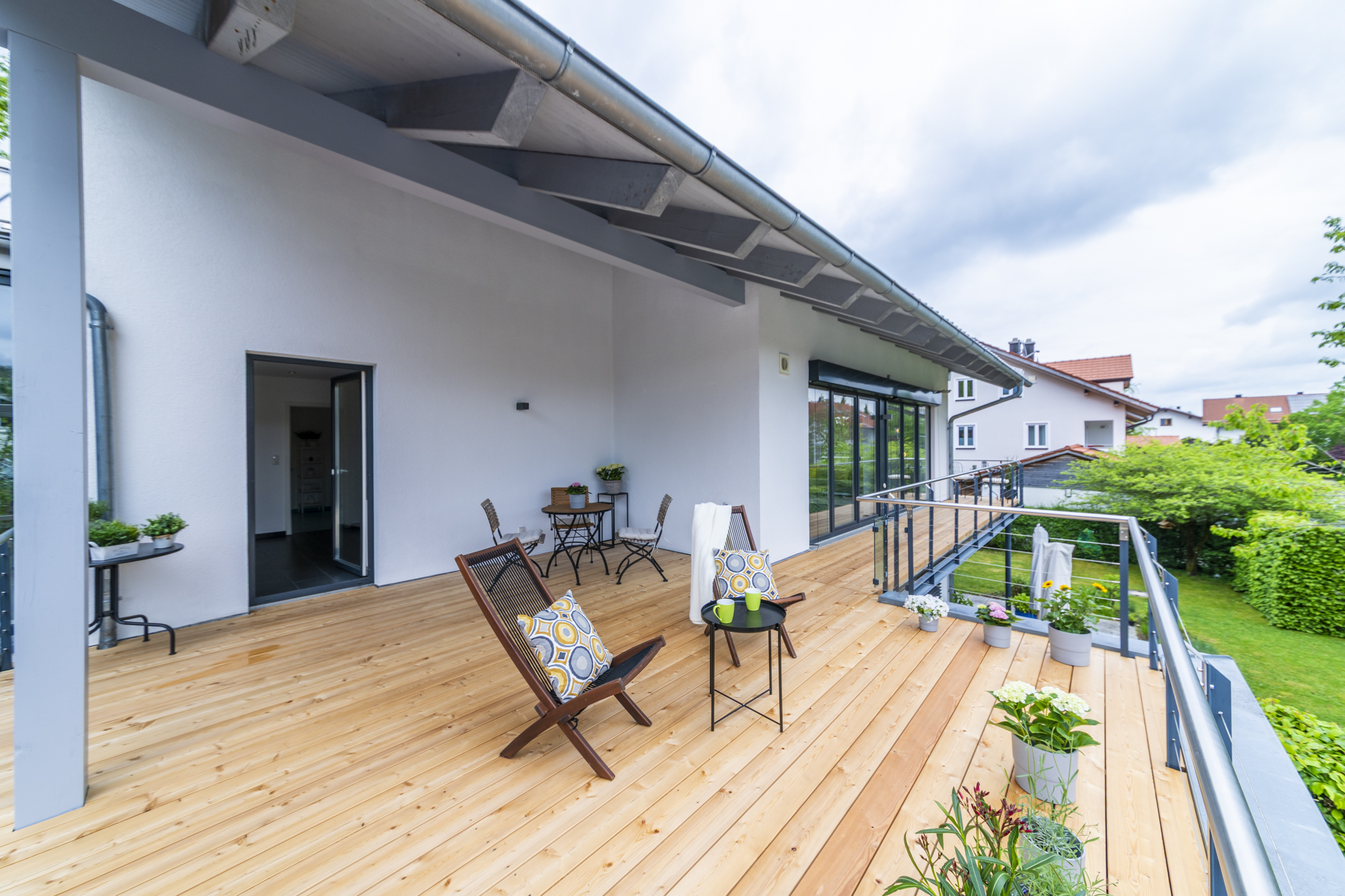 Schön geschnittene, großzügige und helle 4-Zimmer-Wohnung auf zwei Ebenen mit großer Dachterrasse (Südausrichtung) und Balkon (Süd-/Ostausrichtung) in einem 4-Familien-Architektenhaus.