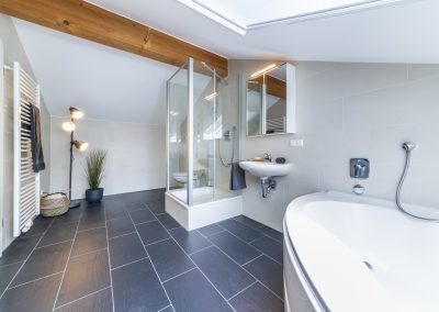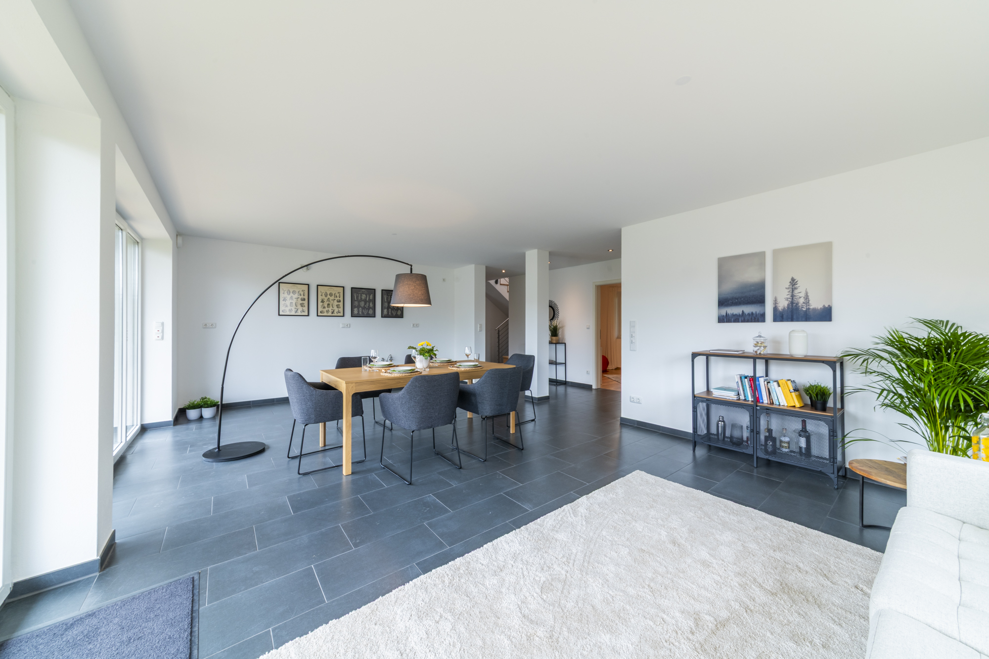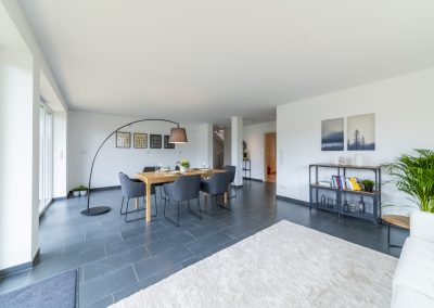 Die Bodenbeläge bestehen aus Fliesen und neu verlegtem Eichenparkett. Elektrische Rollläden in den Schlafzimmern sowie elektrische Beschattungsjalousien im Küchen- und Wohnbereich sorgen für zusätzlichen Komfort. Satelliten-TV ist vorhanden. In der Garage steht eine 11-kW-Wallbox zur Verfügung.